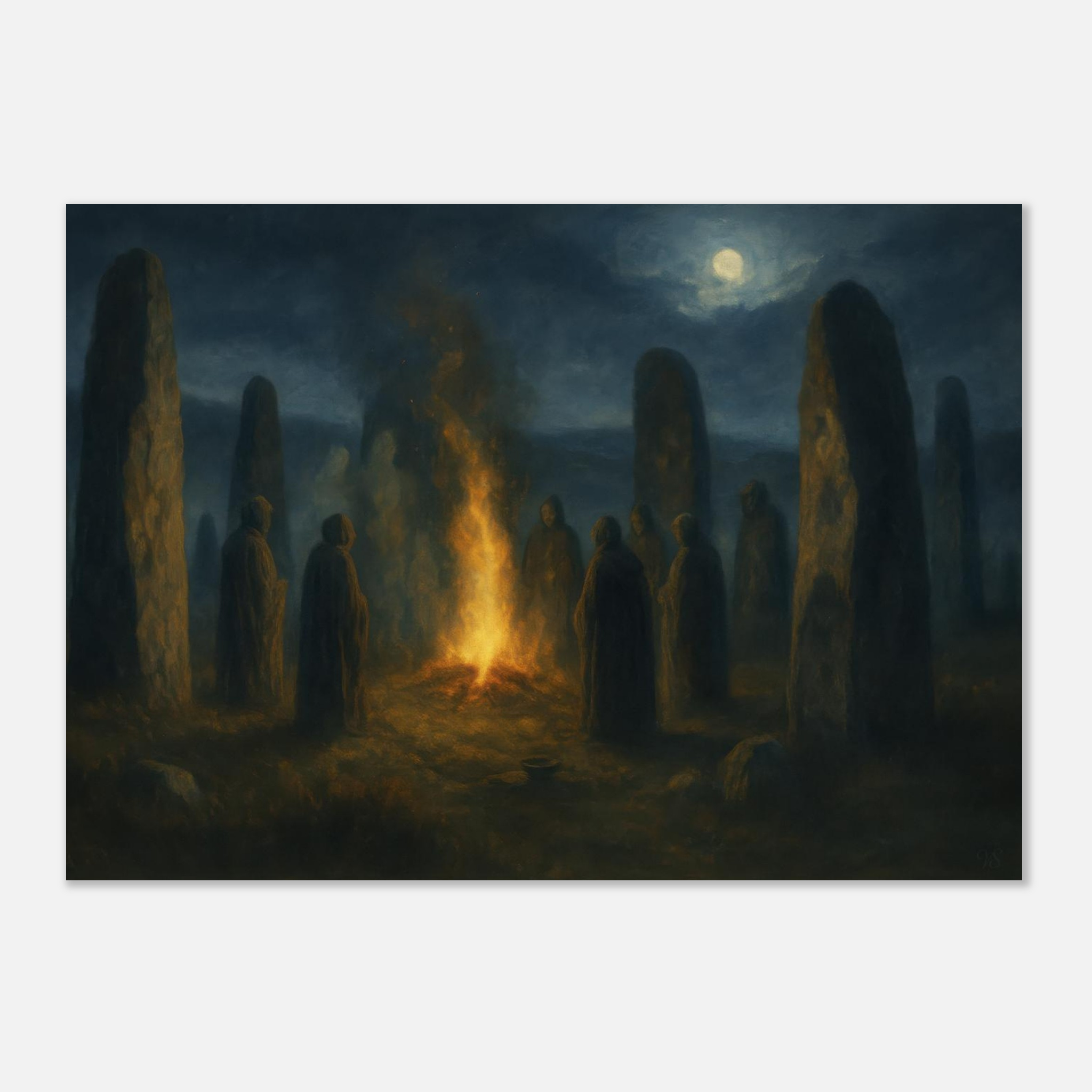 The Fire at Callanish – Shadows of Samhain captures the ancient spirit of Scotland’s rituals, when light and darkness met beneath the standing stones.