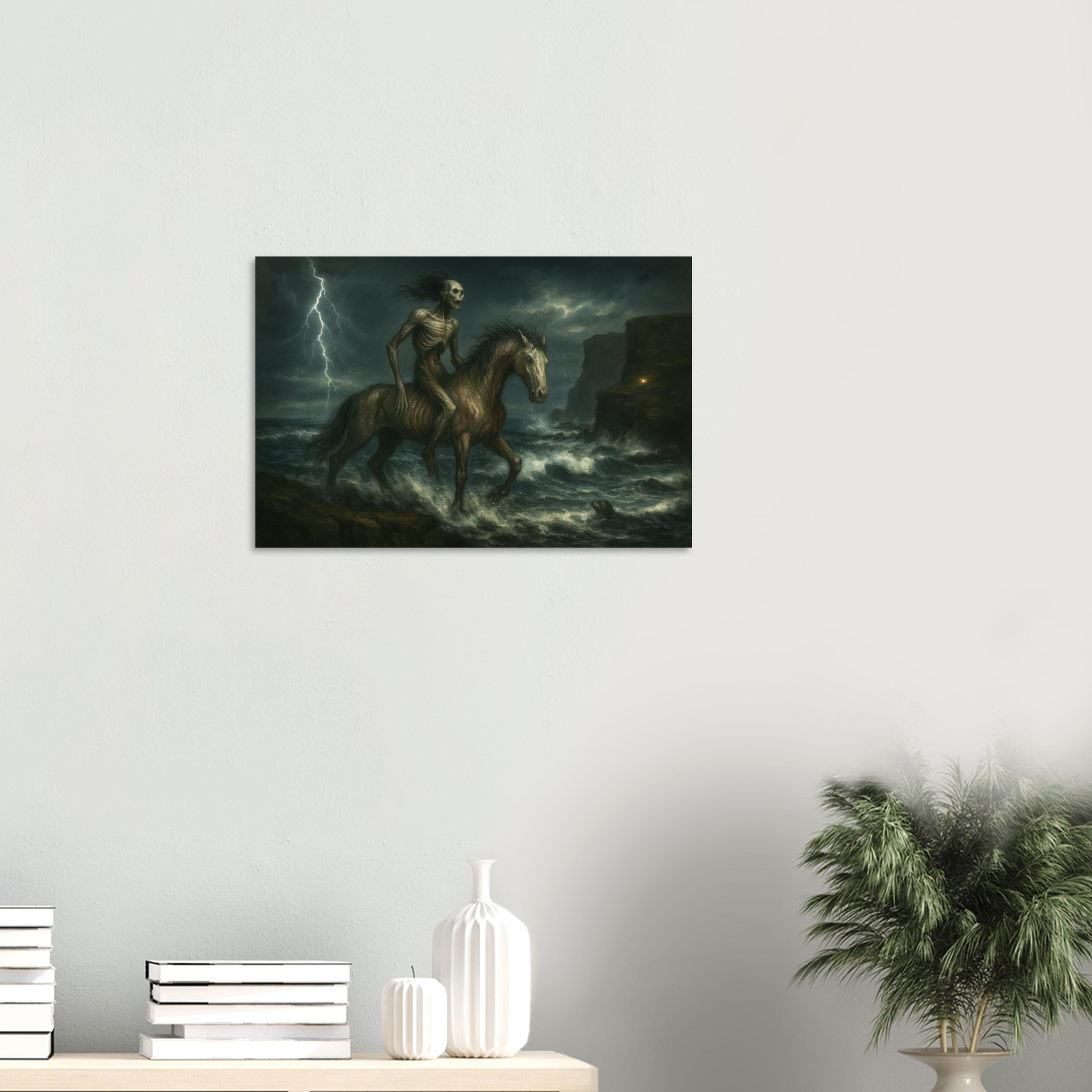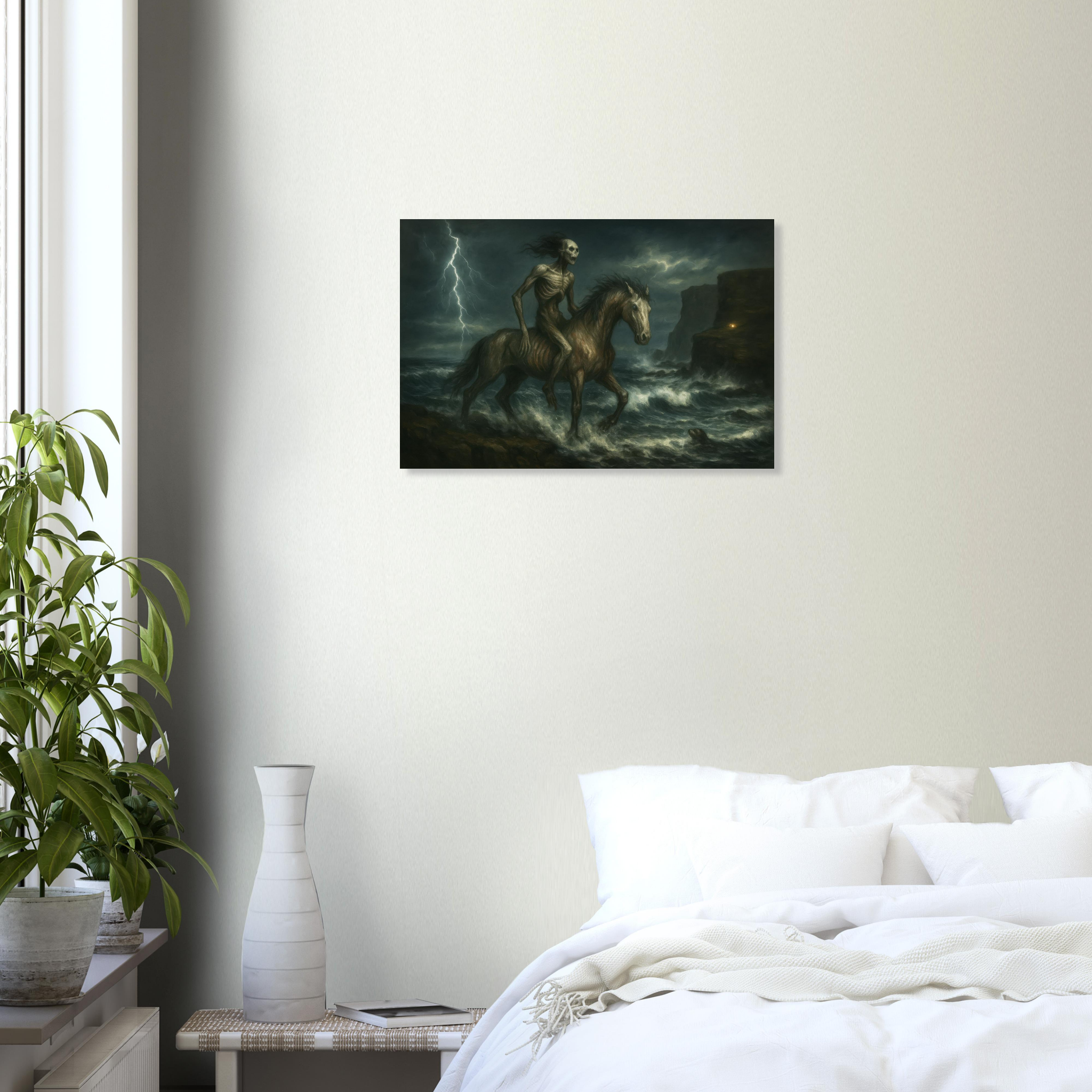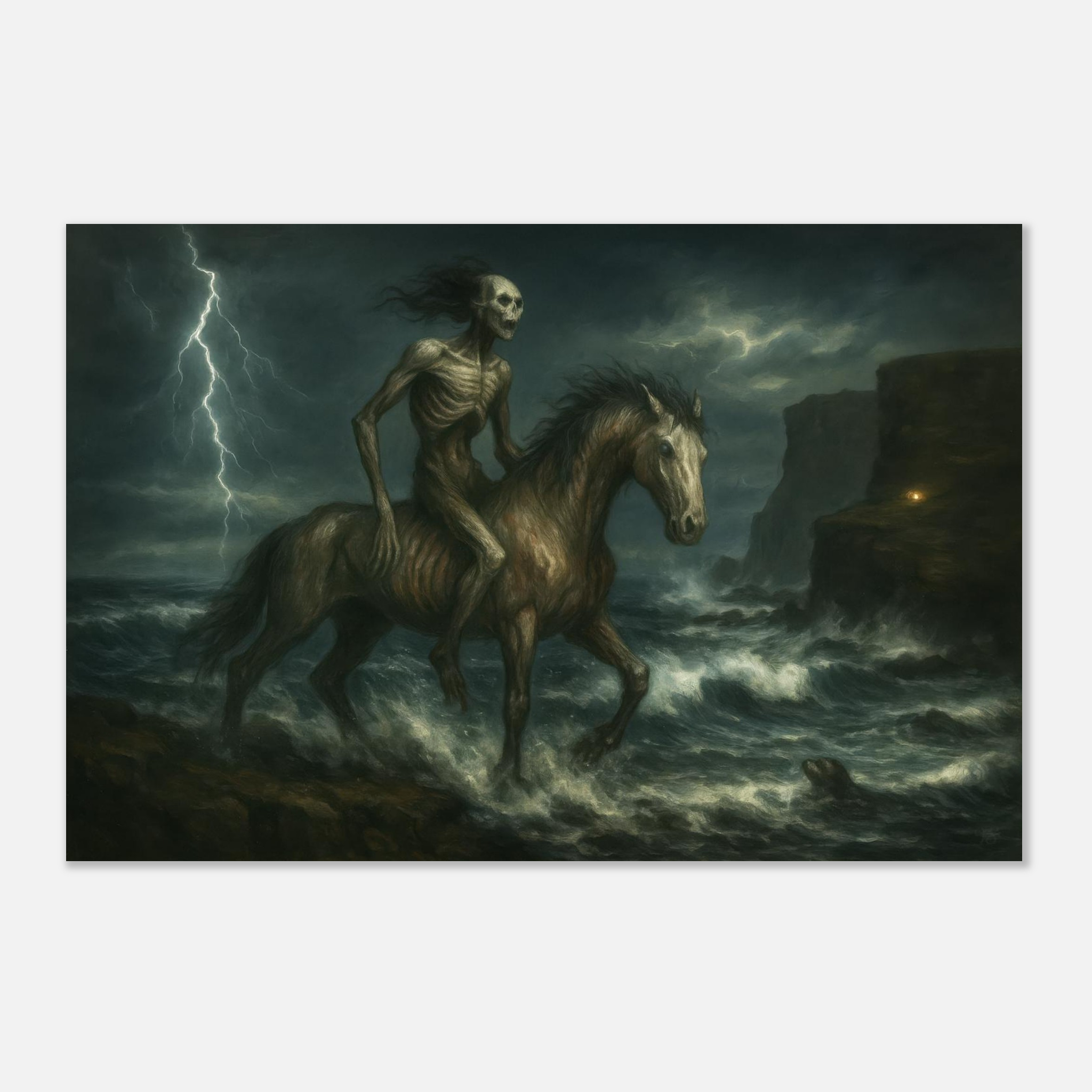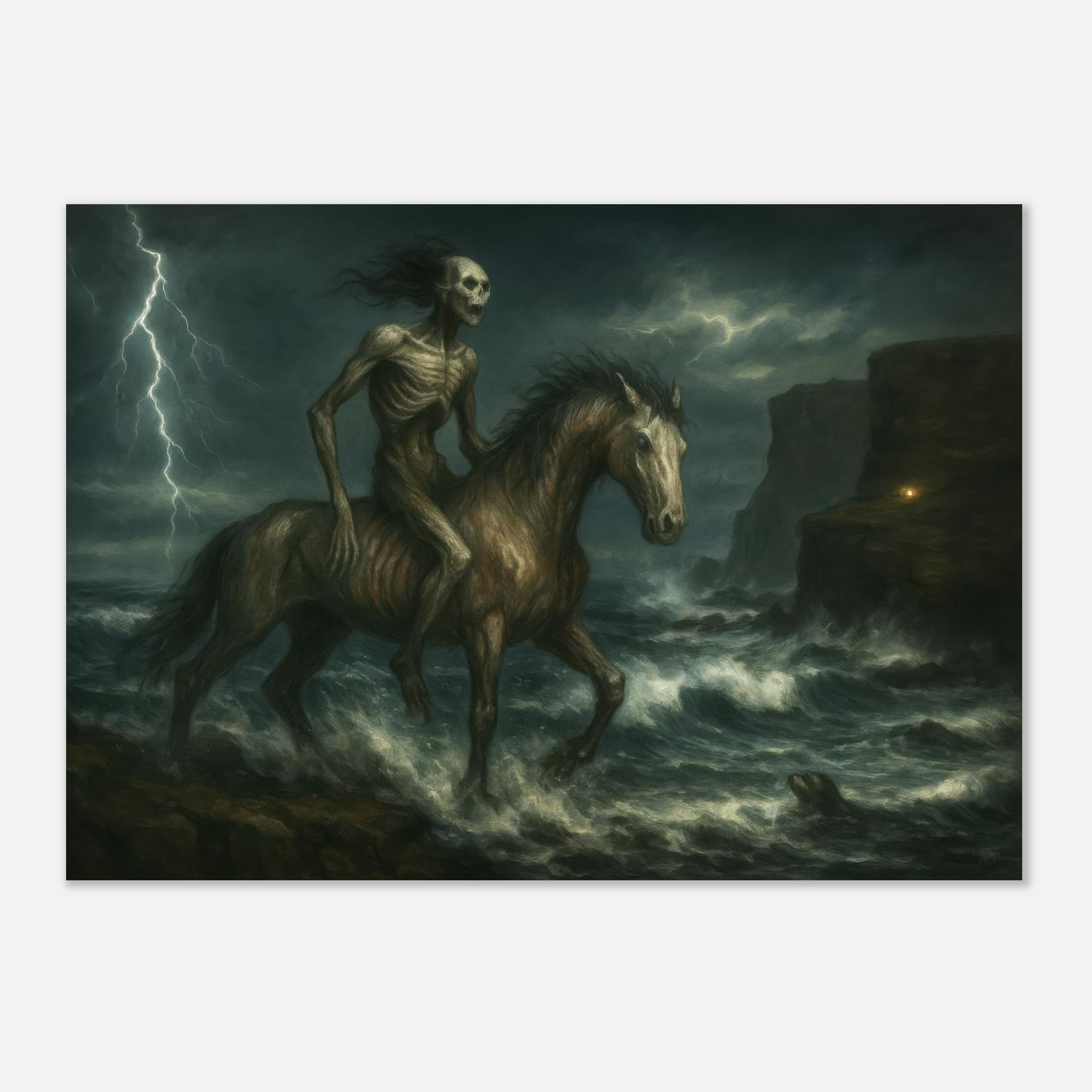 A painterly gothic print from the All Hallows in the North series – inspired by Scottish folklore, tempest seas, and the spectral edge of legend.